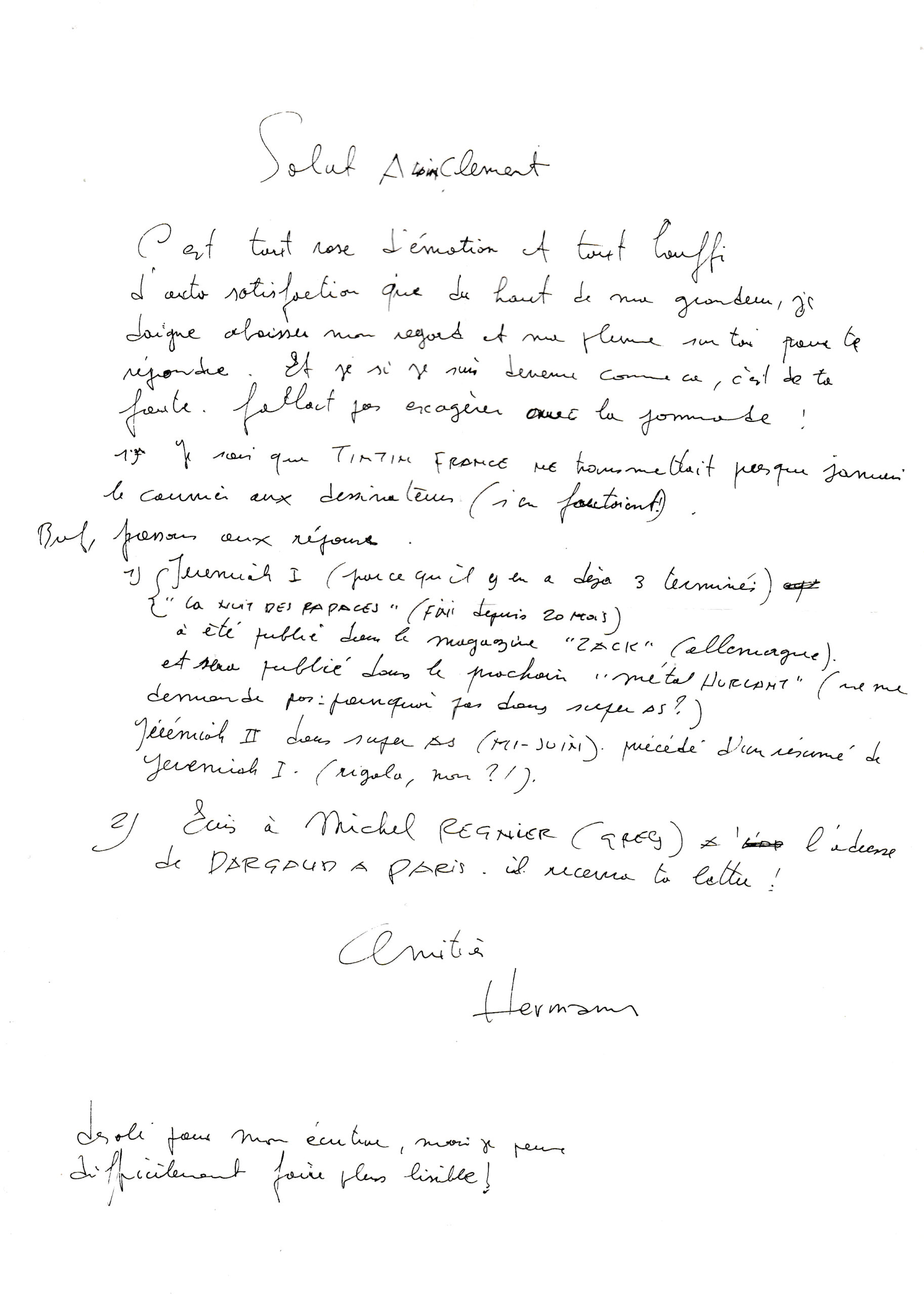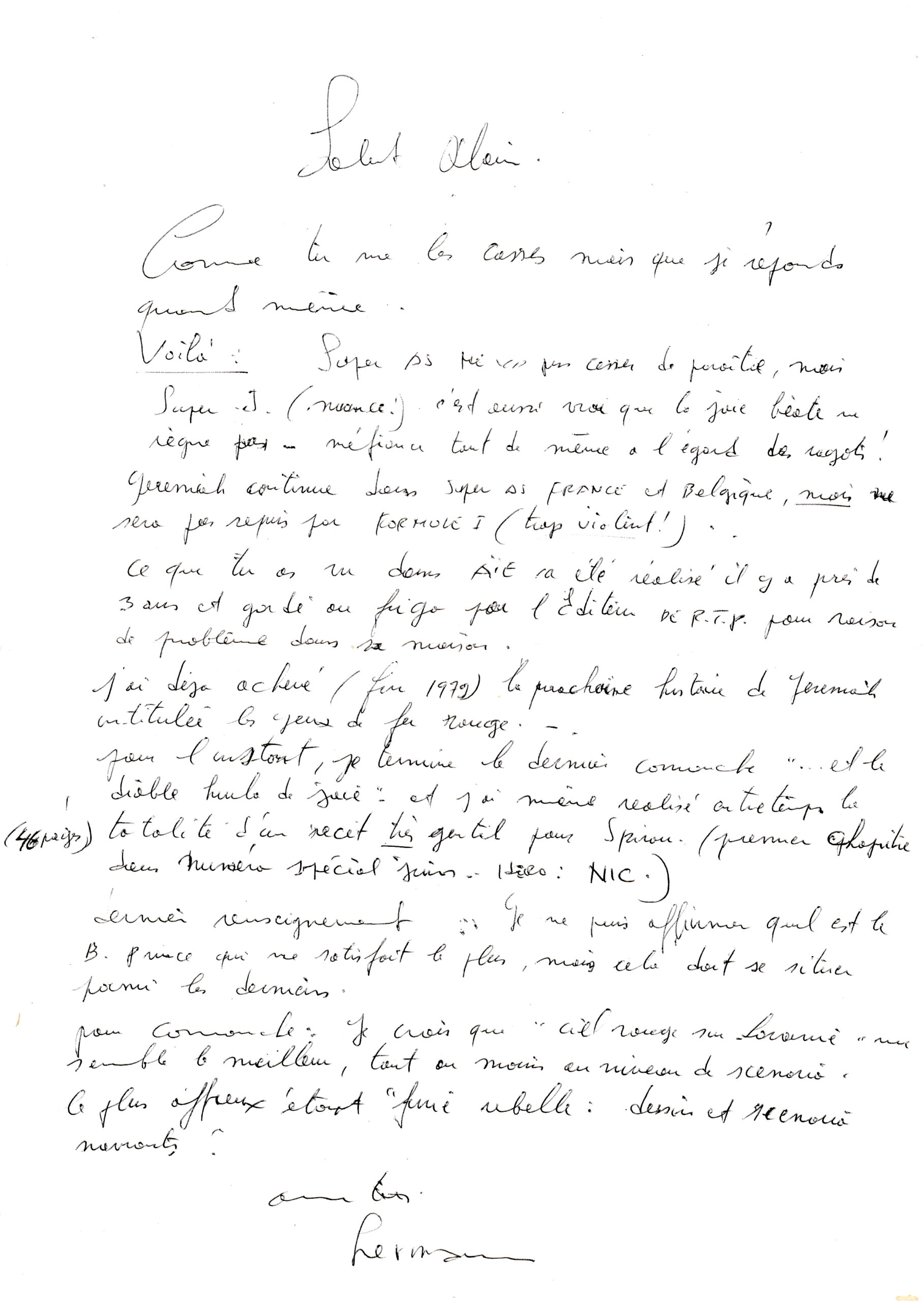 L'idéal serait de pouvoir accéder au scénario, mais faut pas trop en demander -- quoique : si Hermann conservait tout, est-ce que ça allait jusqu'aux pages de Greg...?